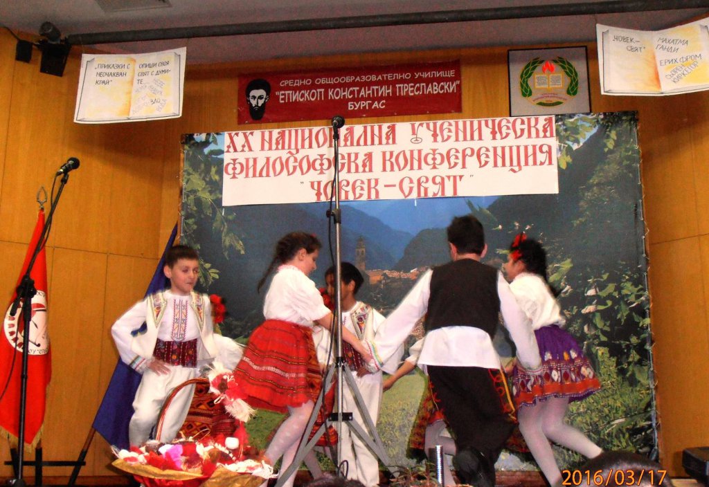 На 17. и 18.03.2016 г. в СОУ „Епископ Константин Преславски” – Бургас се проведе XX-тата ученическа философска конференция “ЧОВЕК – СВЯТ”, в която взеха участие 68 ученици и 43 учители от 36 училища от 20 населени места от 17 български области.