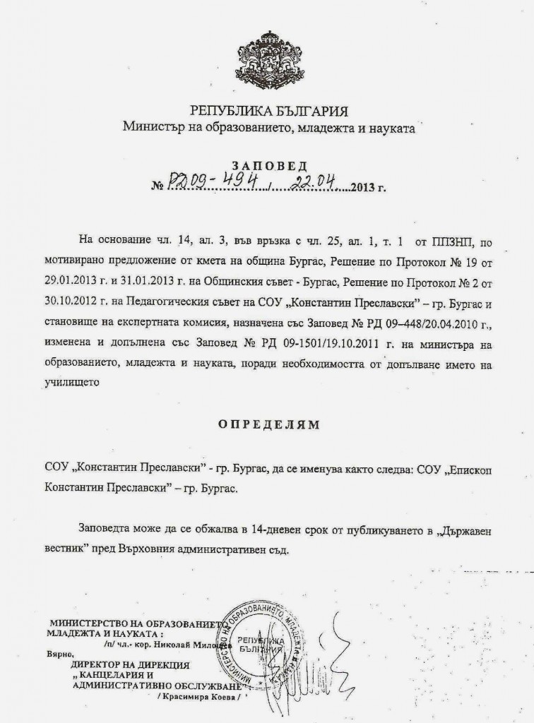 В последния учебен ден на 2018/2019-та ученикът в 9.A клас на Средно училище „Епископ Константин Преславски“ – Бургас Кирил Безсребренников получи специалната награда на Деветия международен литературен конкурс „Изкуство против дрогата“, проведен под егидата на областния управител на Област