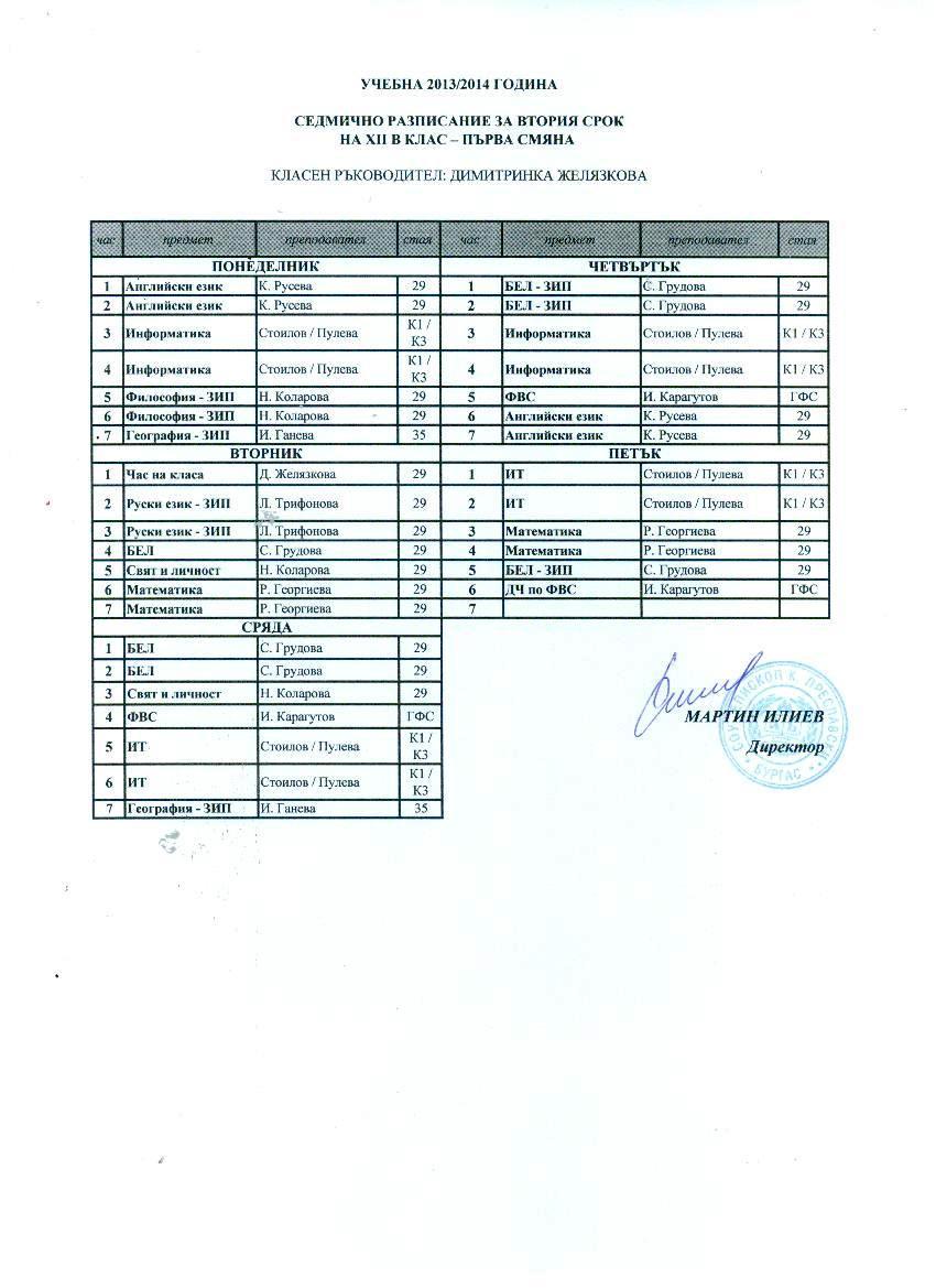 На първи етап на класиране по държавния план-прием в VIII клас в Средно училище „Епископ Константин Преславски“ – Бургас са класирани 78 ученици, което е 100% от всички обявени от училището в гимназиален етап места.        VIII A клас
