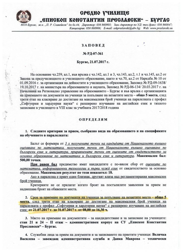 На 4.10.2025 г. сцената на Народния театър „Иван Вазов“ – символ на българската духовност и култура – СУ „Епископ Константин Преславски“ – Бургас получи сертификат за дарение на училищен химн по вдъхновяващата инициатива „Светилник“ на Музикаутор.
