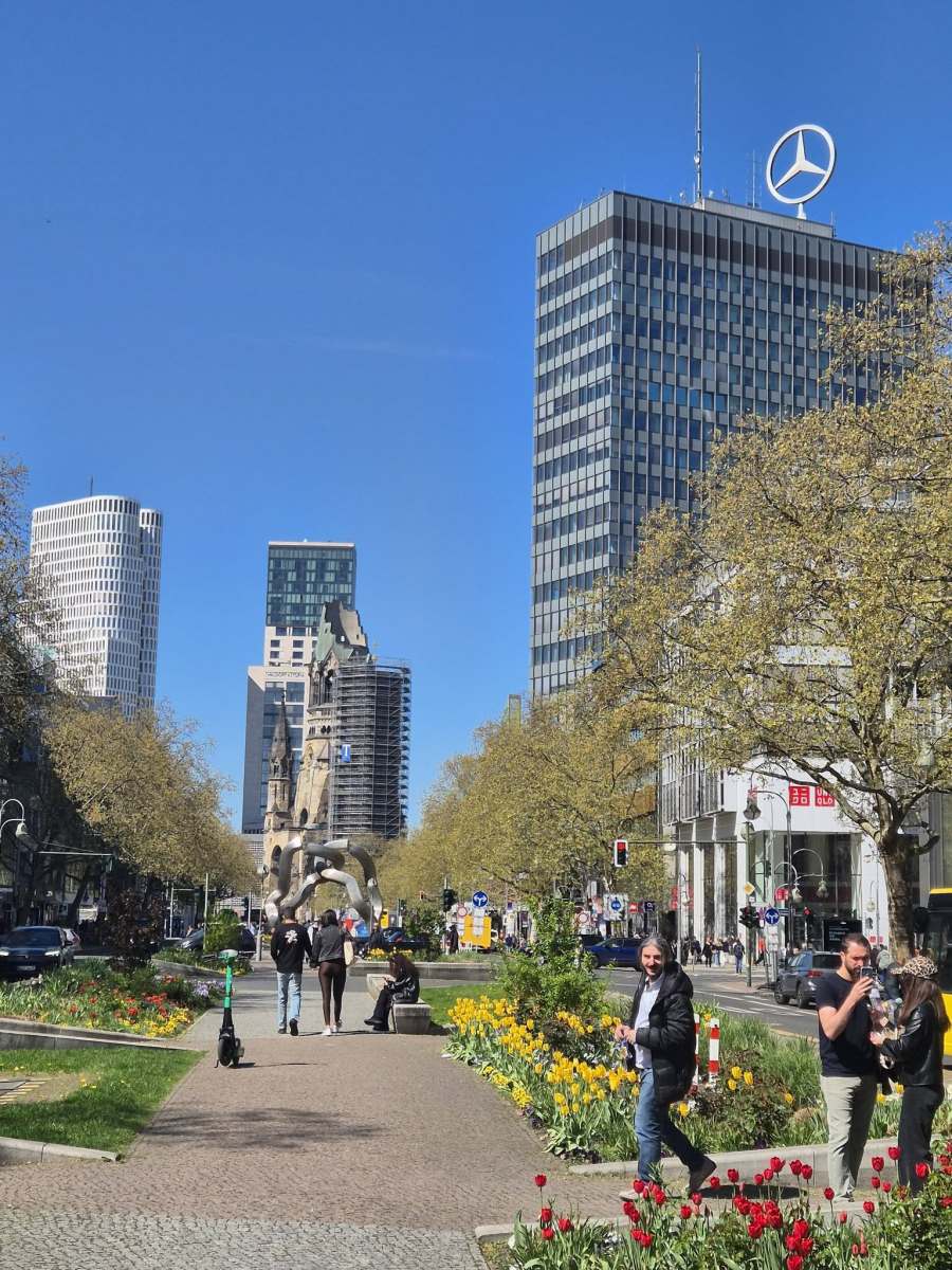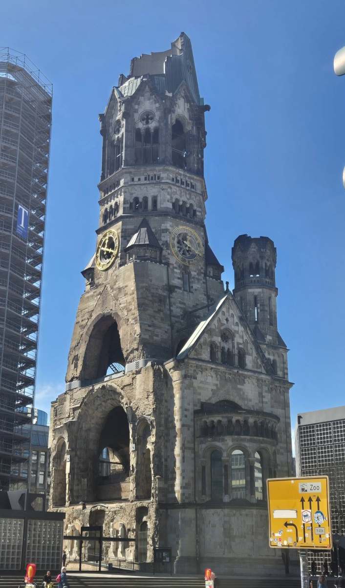 Само на няколко крачки от търговския център се намира църквата „Кайзер Вилхелм“. Разрушена от бомбандировки по време на Втората световна война, но запазена такава. Без обяснения. Без украса. Просто стои и напомня.