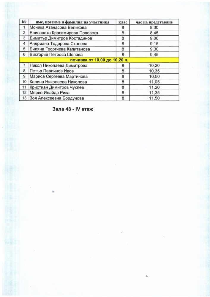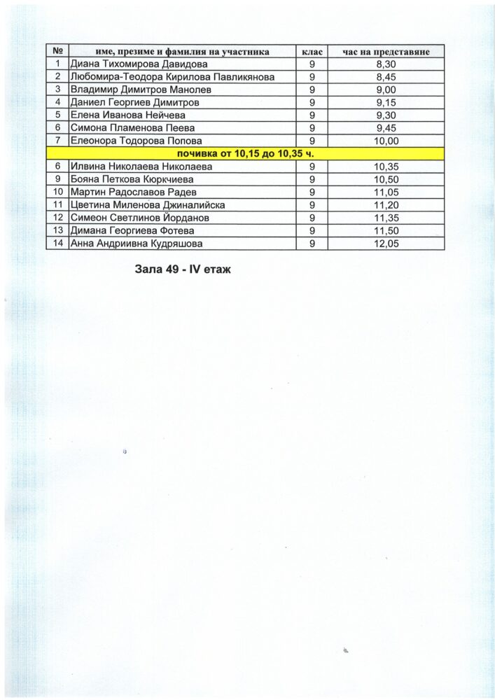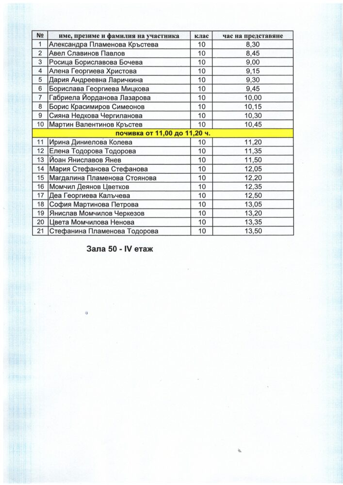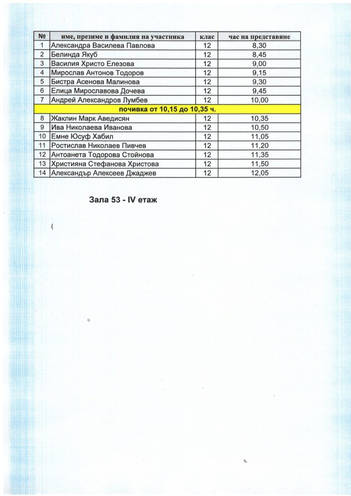 Резултати на участниците от XXХ-тата Национална ученическа философска конференция „Човек. Свят“, 19. – 20.3.2026 година: