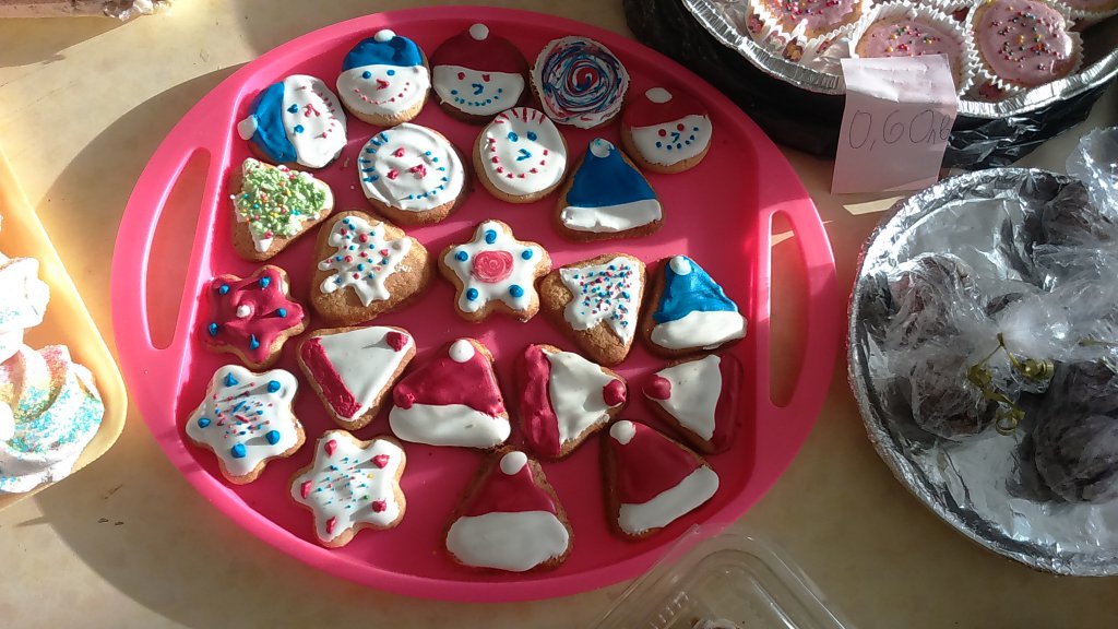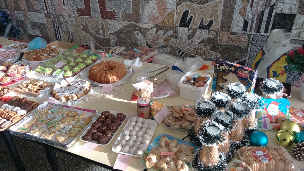 DSC_0024 По традиция, за четвърта поредна година, в СОУ „Епископ Константин Преславски“ – Бургас, по инициатива на Учевическия съвет, се проведе Коледен базар, за набиране на средства, с които да се подпомогнат децата в неравностойно положение, обучаващи се в нашето училище. На 17.12 и 18.12, във фоайето на втория етаж през кабинета по биология, нашите възпитаници предлагаха домашно приготвени лакомства и произведения на изкуството, изработени вкъщи и в часовете по ЗИП и СИП в училище, с идеята да подпомогнат своите приятели и съученици, към които съдбата не е била много справедлива.