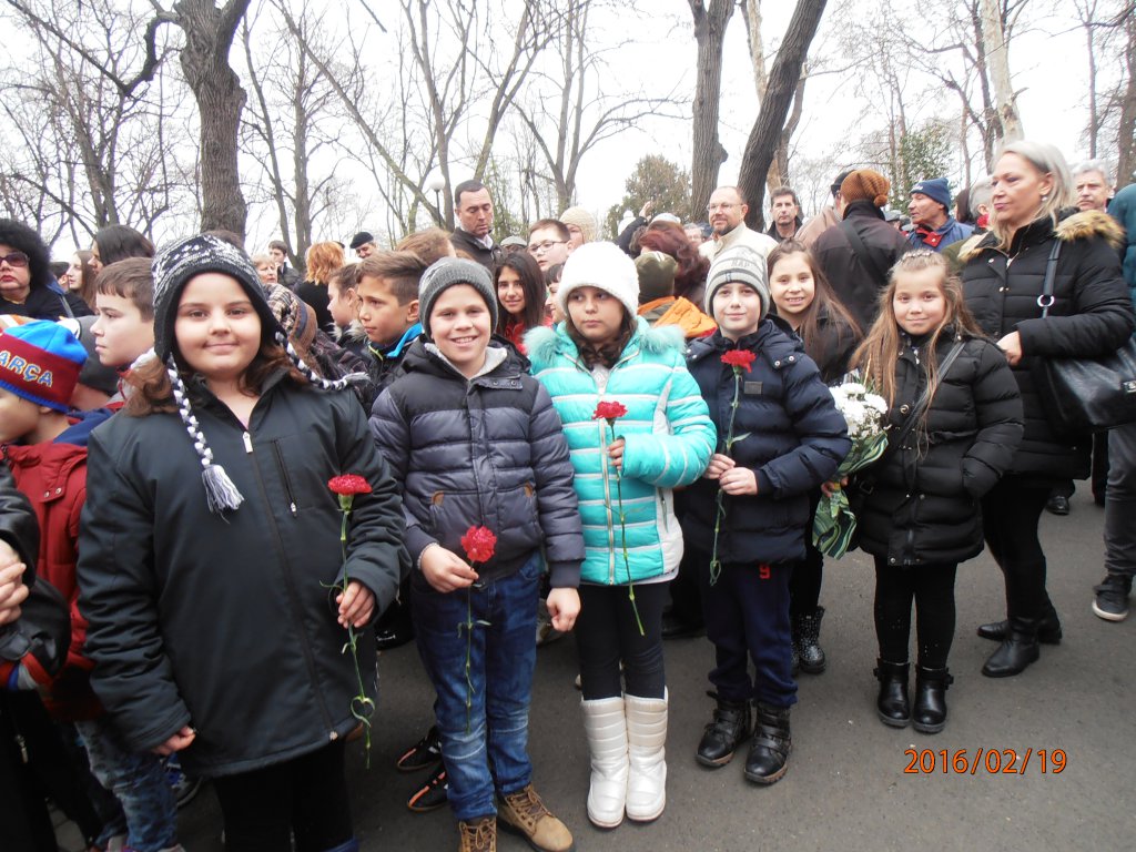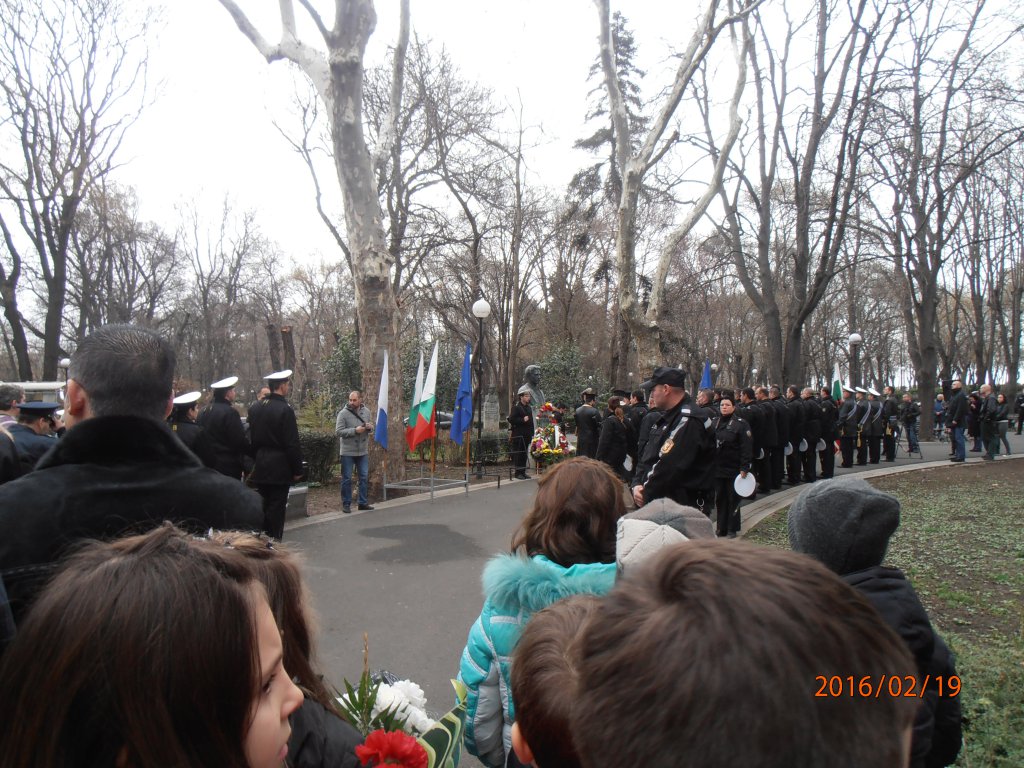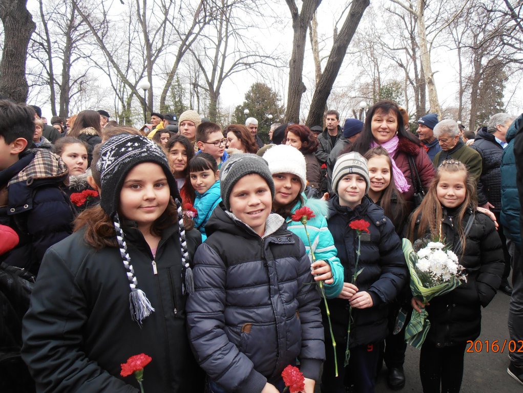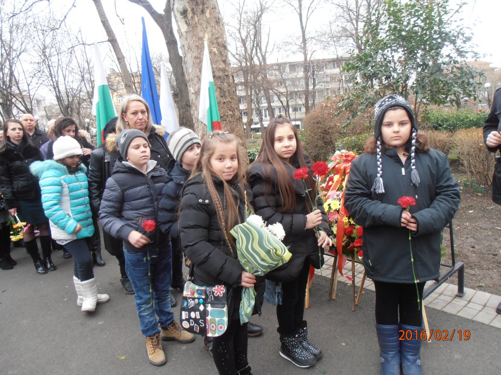 OLYMPUS DIGITAL CAMERA      Ученици от 3-тите класове, водени от г-жа Стефка Богданова  и г-жа божидарка Койчева, старши учители в начален етап, почетоха паметта на Апостола на Свободата, като се включиха в общоградския тържествен ритуал по полагане на венци и цветя пред паметника на Васил Левски в Приморския парк в Бургас.