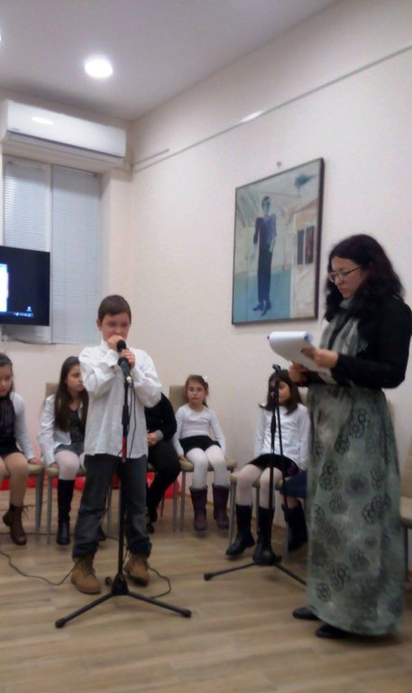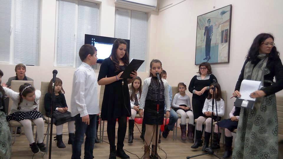 102Вечерта на 19.02. в Дома на писателите Мартин и Михаела от 2-те клас, Вили от 6 клас и Митко от 3 клас от групата  по актьорско майсторство към СОУ „Епископ Константин Преславски“ с ръководител Атанасия Петрова представиха с много емоция спектакъла „Примерът за нас“, посветен на Левски.