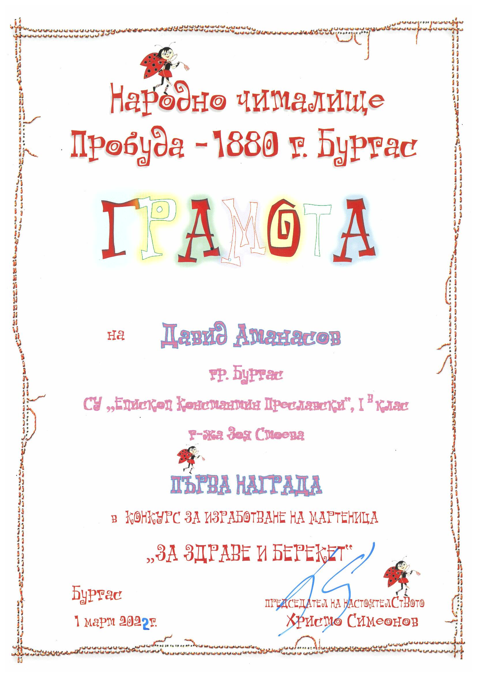 На 22.12.2016 г., Радостин Богданов, син на колегата в начален етап от „Преславски“ Стефка Богданова, беше отличен от министъра на вътрешните работи Румяна Бъчварова със специален приз по време на церемонията „Полицай на годината“, проведена в София, за