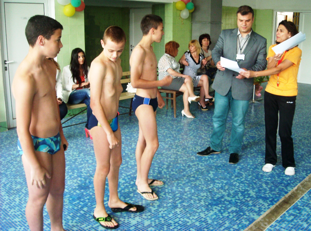 9d С общинското първенство по случай Деня на спорта – 17 май, беше закрит плувния сезон 2012-2013 в СОУ „Епископ Константин Преславски“. В състезанието премериха сили ученици от 6 – 7 клас, обучаващи се в училищата с плувни басейни в Бургас – ОУ „Братя Миладинови“, СОУ „Константин Петканов“ и домакините от „Преславски“. Организатори на проявата бяха представители на дирекциите „Здравеопазване“ и „Спорт“ към Община Бургас, а за реализиране на събитието помогнаха учителите по физическо възпитание и спорт и треньори по плуване в трите учебни заведения. Г-жа Веселина Деведжиева – директор на Дирекция „Спорт“ поднесе награди на младите плувци – бъдещи олимпийски надежди на града ни и им пожела още множество успехи в „сините коридори“.