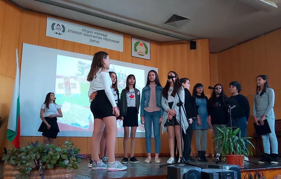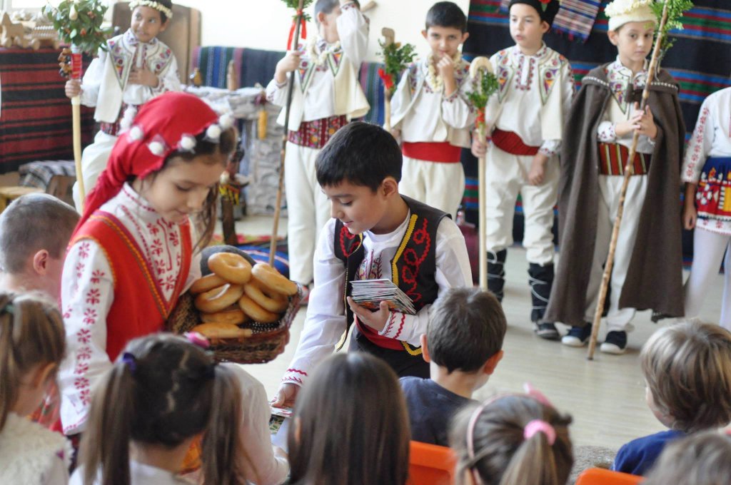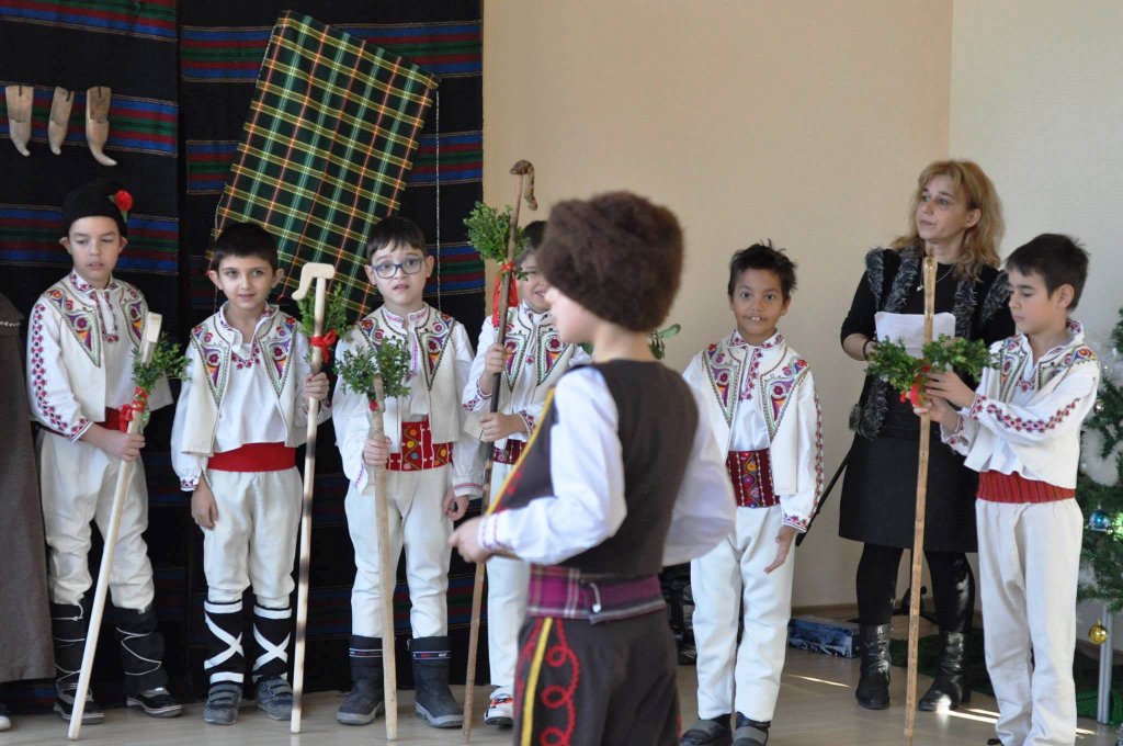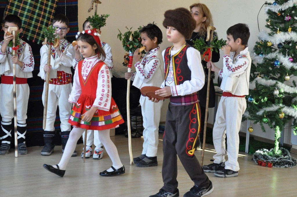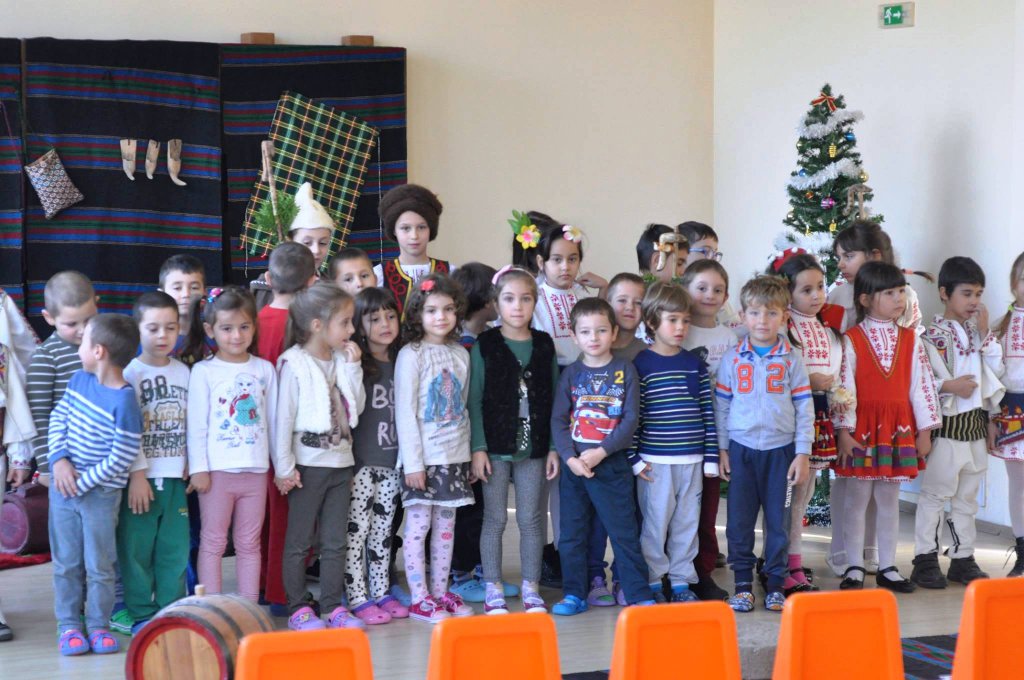 08На 15.12.2015 г. учениците от 1 „в“ клас  с класен ръководител Николина Желева, посетиха ДГ „Коледарче“, кв. Лозово. Послучай предстоящия празник, те поздравиха децата с битова сценка за Коледа, почерпиха ги с кравай и им подариха коледни книжки и картички.