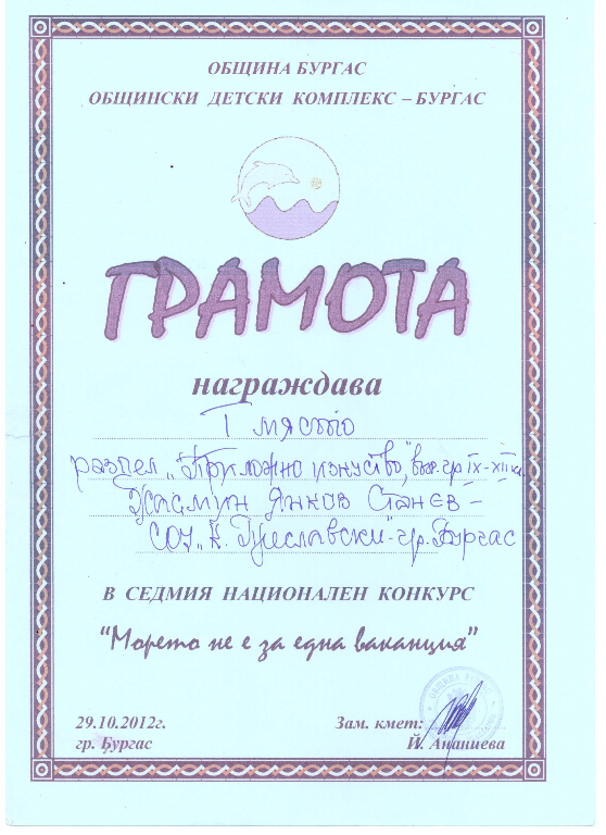 Учениците от СУ „Епископ Константин Преславски” (V-VII клас) с ръководители Красимир Костадинов и Янчо Кайряков заеха първо място на провелото се на 27 април регионално състезание по противопожарен спорт „Млад огнеборец” – Бургас за 2023 година. Техни подгласници станаха възпитаниците на СУ ”Св. Св. Кирил и Методий” – Созопол, а на трето място се класираха младите пожарникари от ОУ ”Христо Ботев” – кв. „Долно Езерово”.