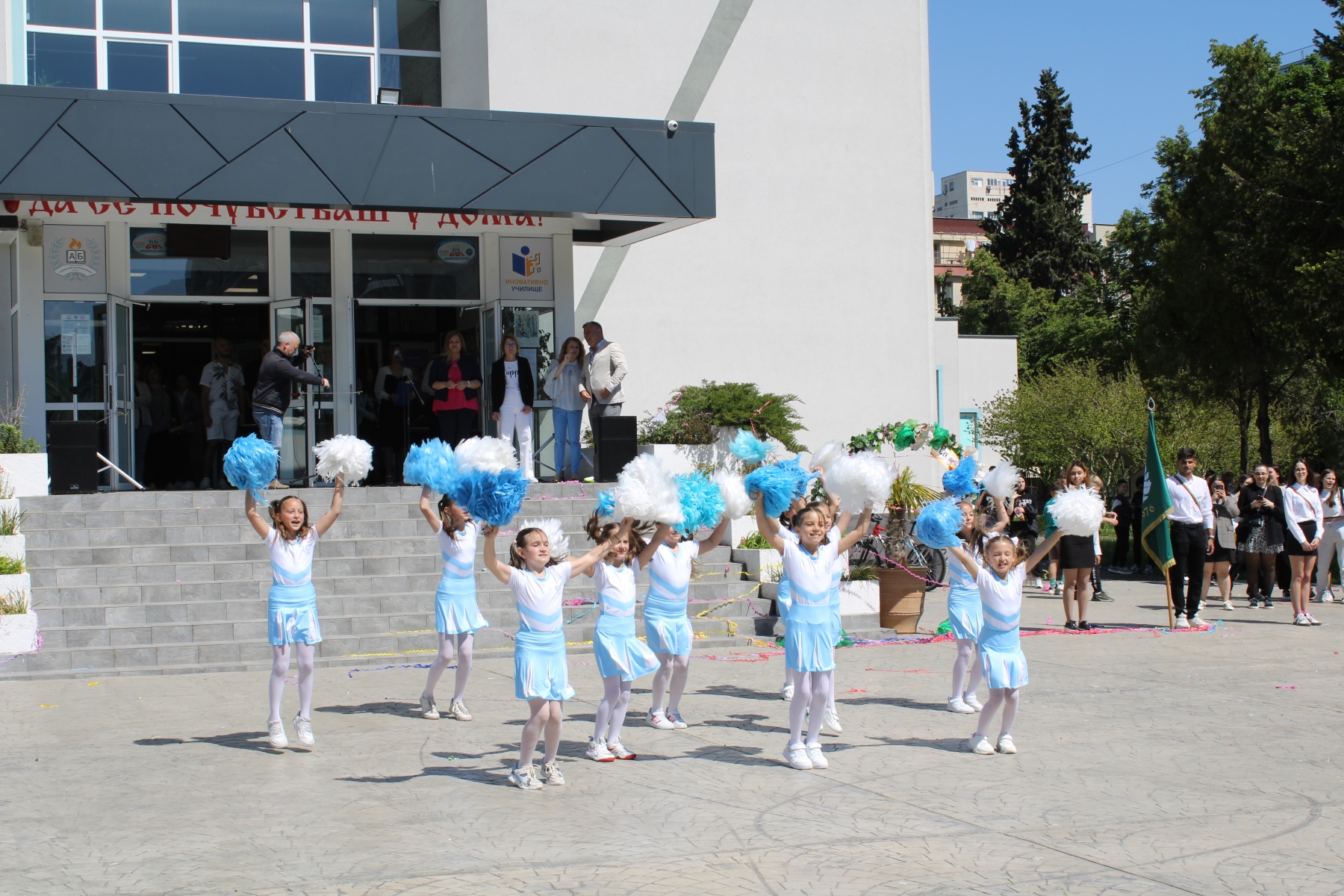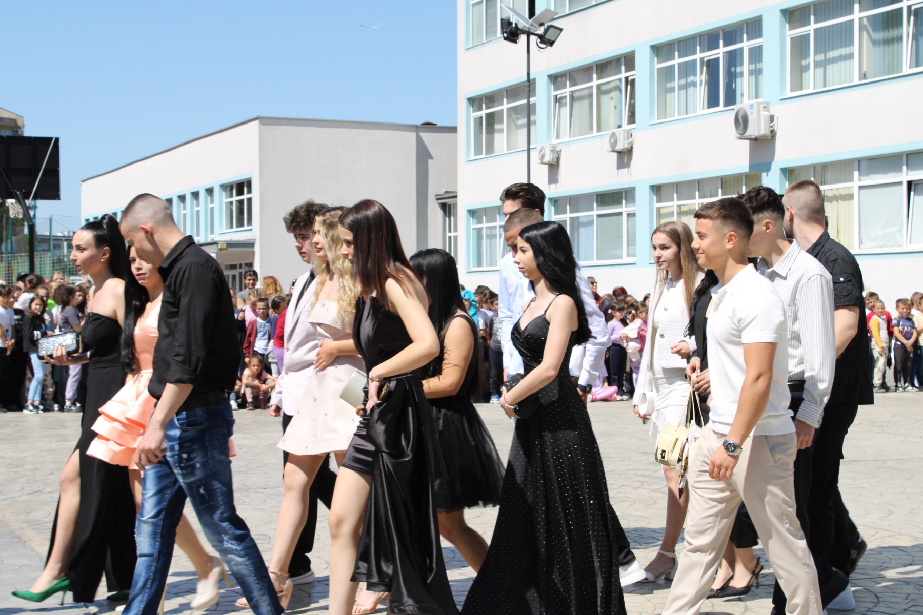 Дворът на училището се изпълни с цветове, усмивки, песни и сълзи на радост и носталгия. По-малките ученици – от първолаците до единадесетокласниците – изпратиха своите по-големи приятели, като се включиха в празника с песни, танци и артистични изпълнения, които показаха колко талант живее в нашето училище.