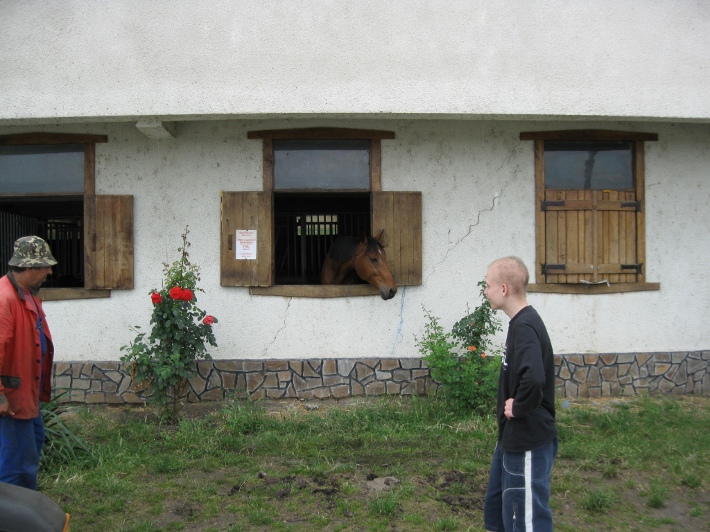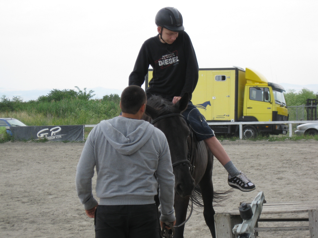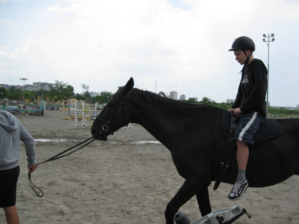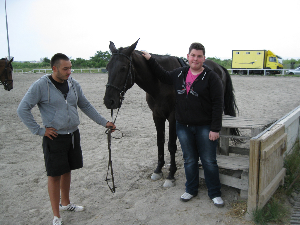 IMG_1614На 06.06.2013 г. ученици от ателието за социоарт „Познание за хората и за себе си” по проект „УСПЕХ“ в СОУ „Епископ Константин Преславски” с ръководител училищния психолог Светозар Янев посетиха конната база при Община Бургас, където участваха в организирано рехабилитационно занятие с учебни коне. Инструктори по езда запознаха децата с базата и конете и с особеностите на конния спорт. Учениците имаха възможността отблизо да общуват с животните и да научат повече за техния живот. След това всяко дете от групата премина през индивидуално занятие по рехабилитационна езда с помощта на персонален инструктор от конната база.