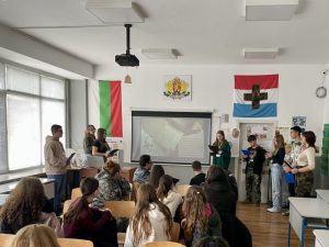 Десетокласниците бяха подготвили и презентация, чрез която запознаха аудиторията със своето незабравимо преживяване през лятото във Националния военен университет “Васил Левски” във Велико Търново. По време на едноседмичния ученически военен лагер, нашите ученици не просто слушаха за героите – те влязоха в техните обувки, придобивайки важни знания и умения за оцеляване. „Те преминаха през изпитания, които изискваха дисциплина, екипна работа и непоколебимост: от навигиране с компас, сглобяване на оръжие и дегизировка, до среднощния строй“, сподели техният ръководител в дейностите по проекта г-н Светлин Стоянов – учител по история и цивилизации в „Преславски“.