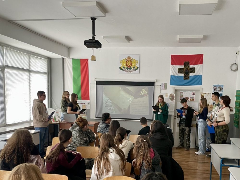 Гимназисти от X клас представиха пред свои връстници и учители историята на полка, оставил незаличима диря в българската военна летопис, покривайки се със слава в епични битки във войните за национално обединение и освобождение на Отечеството.