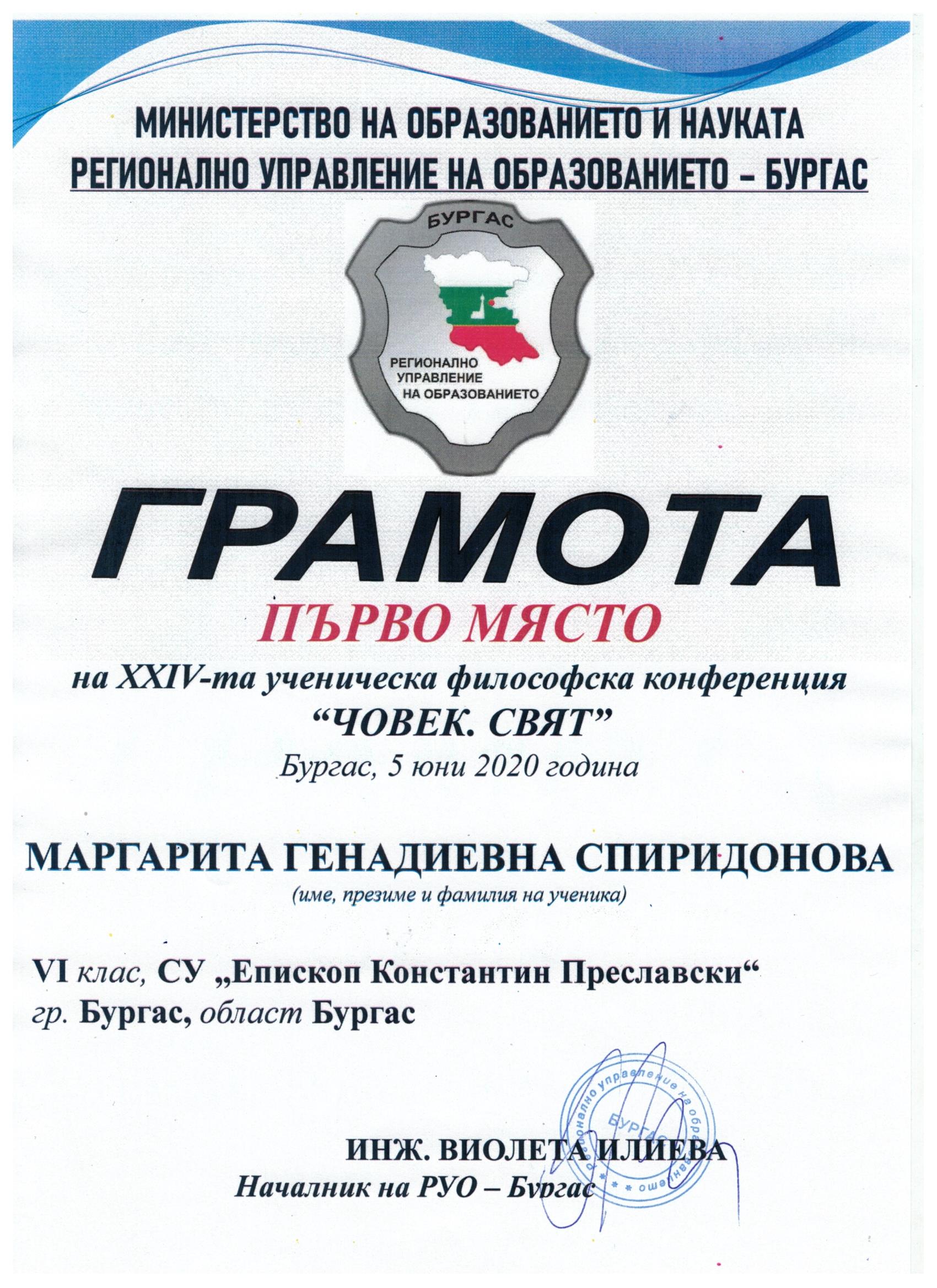 Грамоти за отличен успех получиха 6 ученици – 4-ма от 12а (Иван Неделчев, Екатерина Лячева, Венко Савов и Денис Драганов) и 2-ма от 12б клас (Нурай Велиева и Петя Илиева). Първенец на випуска е Нурай от 12б клас с общ успех от дипломата Отличен 5,96!