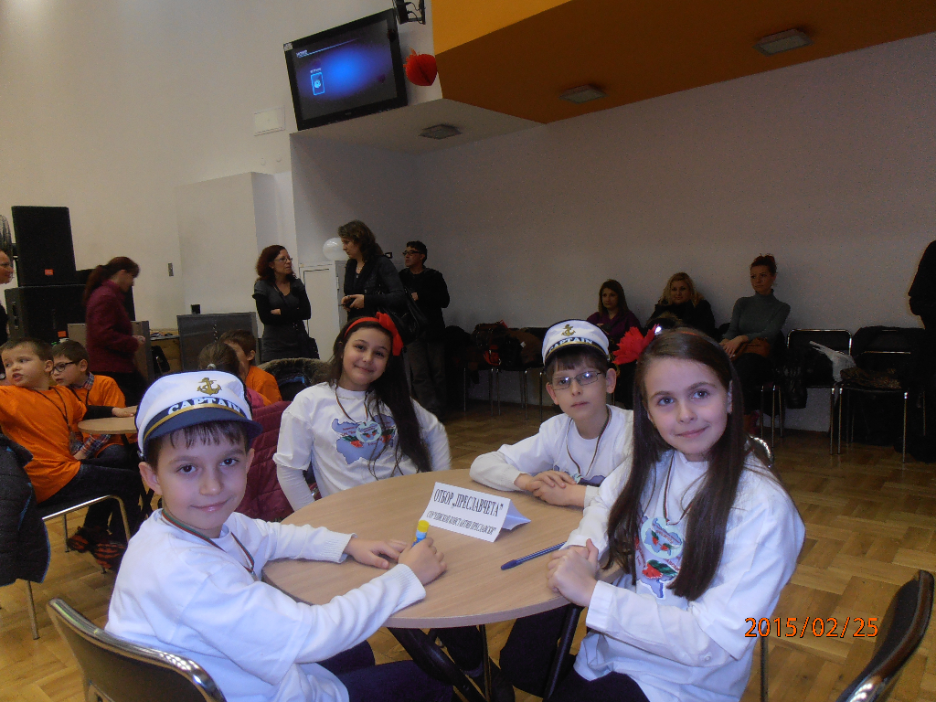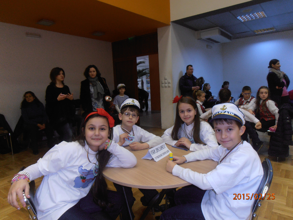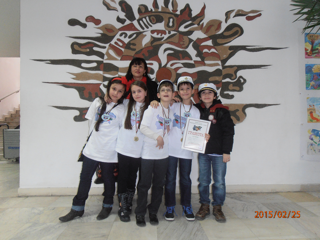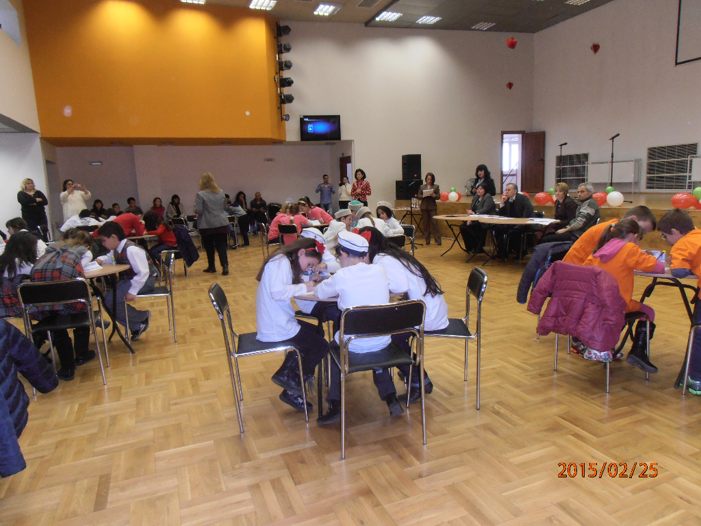 OLYMPUS DIGITAL CAMERAВ чест на Националния празник на България – 3 март, се проведе Общинското състезание „Аз съм българче“, организирано от Община Бургас и Общински детски комплекс. Второкласници от единадесет бургаски училища отговаряха на въпроси свързани с българската история и се състезаваха в четири кръга – „Родна реч“, „Мой роден край“, „Национални герои“ и „Обичам те, татковино“. Купи и медали, осигурени от организаторите получиха всички участници в състезанието. На първо място се класира отборът на ОУ „Христо Ботев“ – кв. Ветрен. Малките второкласници от СОУ „Епископ Константин Преславски“, водени от класния ръководител на 2 „а“ клас Стефка Богданова, представиха достойно нашето училище и се класираха на трето място заедно с отбора на ОУ „Братя Миладинови“.