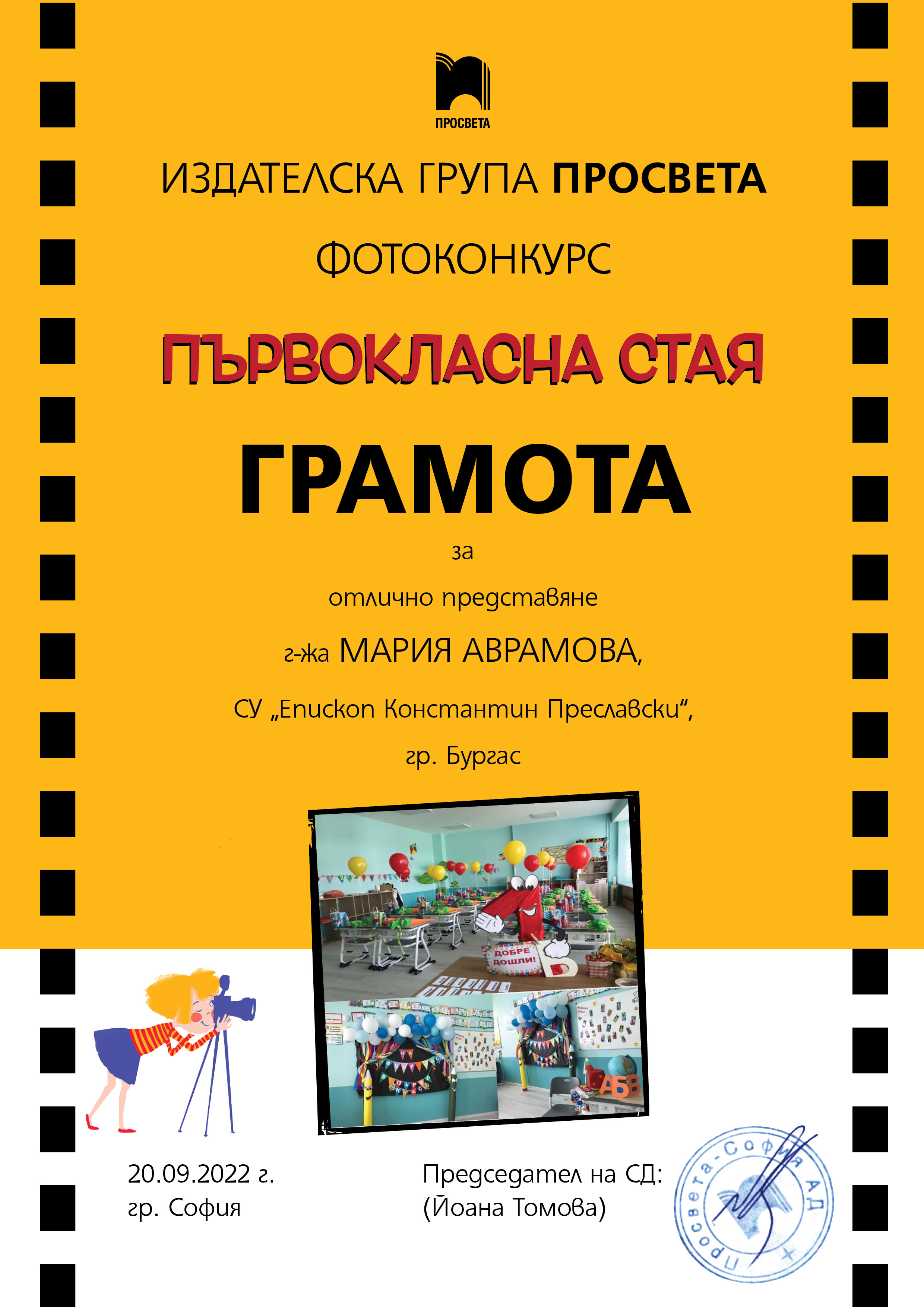 За участието си в VI-тия ученически конкурс „За моята България“, организиран с медийната подкрепа на Българско национално радио – Бургас и със съдействието на Община Бургас и Регионално управление на образованието – Бургас, ученикът Константин Жан Жеков от ІІ Б клас беше отличен с първо място и златен медал в направление „Рецитирам за България“, а БНР му присъди второ място, грамота и плакет.